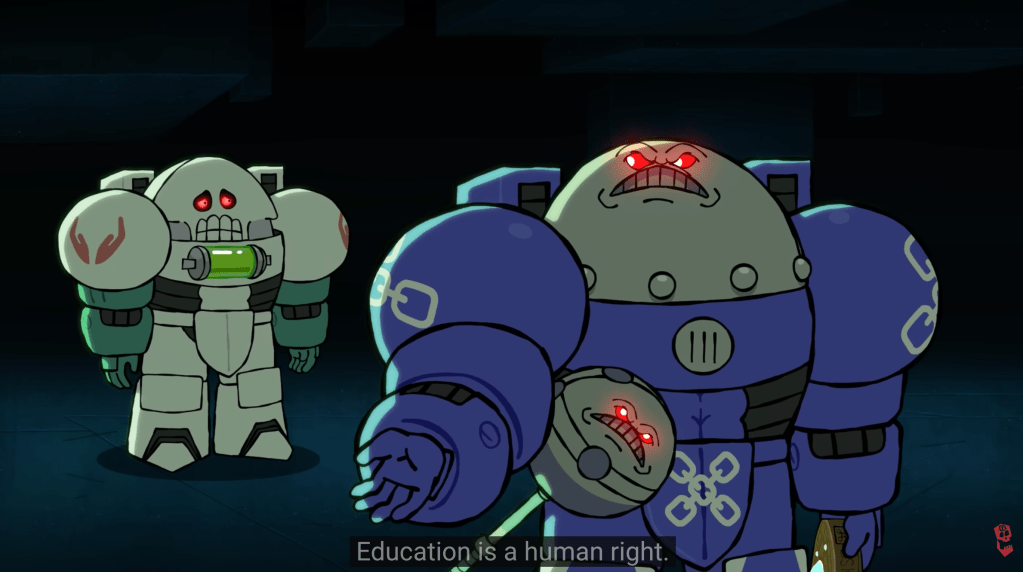 Probably more than the first two episodes, The Imaginator just knows what it is. From eternally iconic lines that just don’t give a damn—”Oh, Terry’s retarded now”—to actually interesting moral dilemmas handled in a light and hilarious fashion—What do you do with hyper-intelligent AI that only knows pain and hate?—The Imaginator swings often and it swings hard, often hitting home runs. Even the basic premise of going on a dangerous, forbidden mission and destroying the jail of a potentially existential threat all so the core cast doesn’t have to have pink lasers anymore just feels right at home in this universe.
