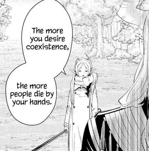 Combine this with Frieren recognizing that there are some things in this world whose whole purpose is to destroy you—making destroying them first the most moral path forward—and there’s a lot of good, practical values being pushed into mainstream conversation through anime.
